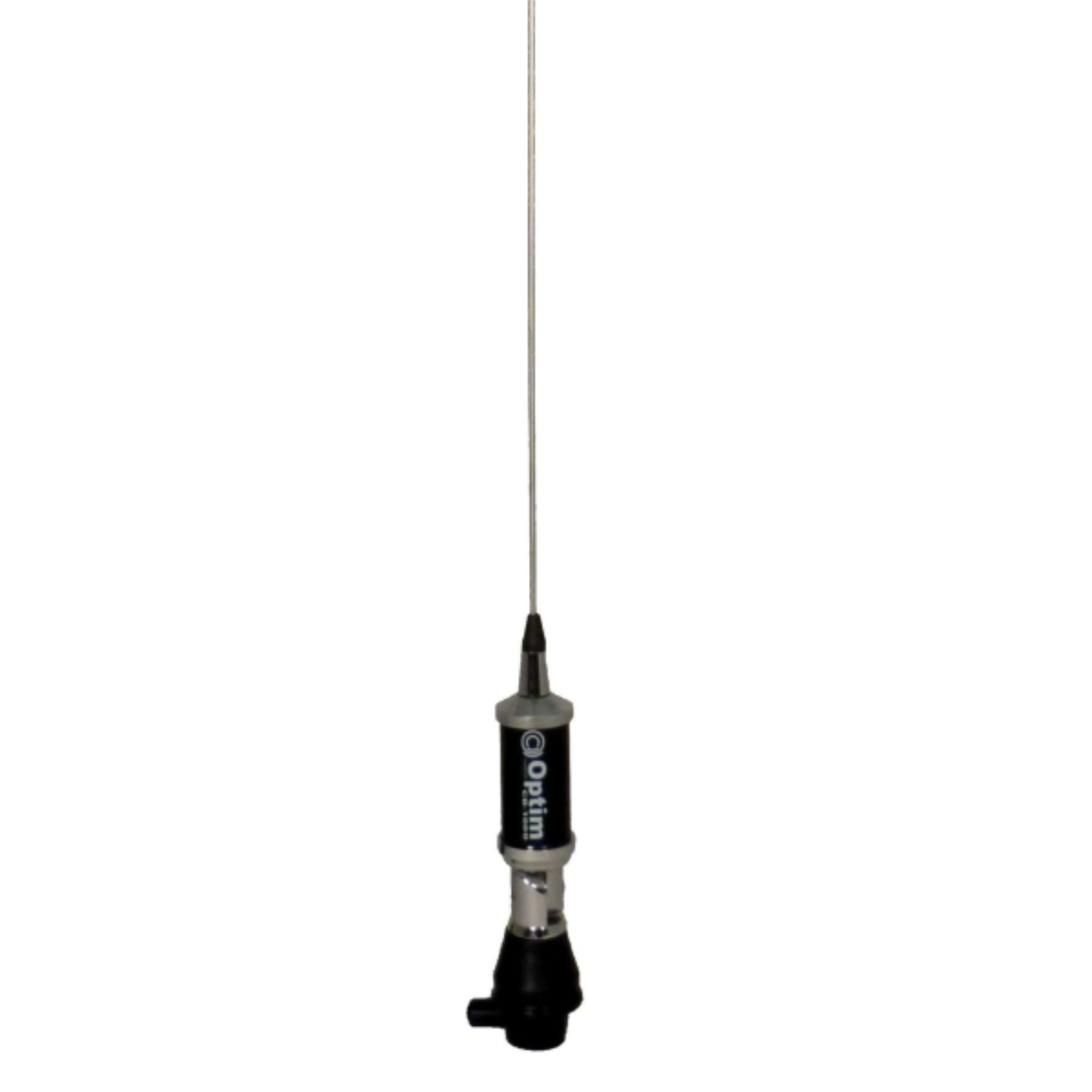 Optim CB-1000 — автомобильная антенна Optimcom для применения с автомобильными радиостанциями в диапазоне частот си-би (СВ): 26-28 МГц. Антенна имеет врезное крепление диаметром 42 мм, высоту - 1600 мм (при длине штыря 1500 мм). Антенна предназначена для установки на автомобиле при помощи специального кронштейна или врезным способом.