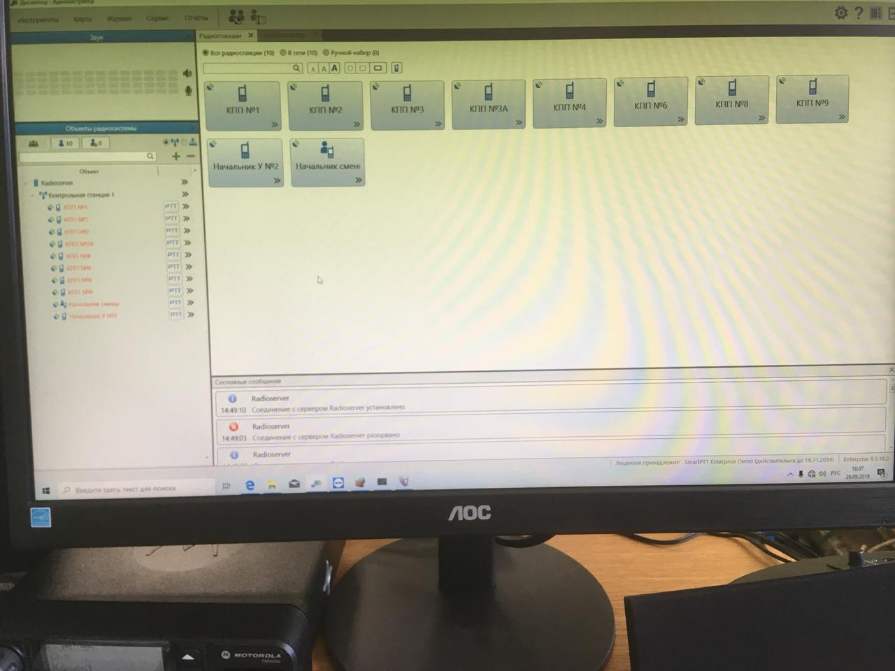 В течение следующего дня осуществлена прошивка радиостанций Motorola и установка лицензий на диспетчерские пункты, прописывание радиостанций на диспетчерский пункт №1, добавление офлайн карты, проведена работа с дежурной сменой по ознакомлению с материально-технической частью с выездом на территорию завода для проверки связи в полевых условиях.